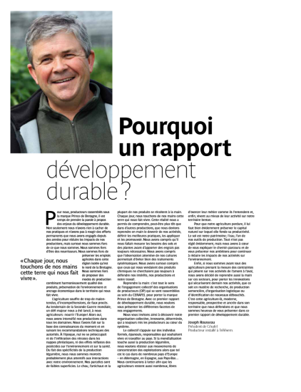 Ce rapport a été créé dans le but de prendre la parole à propos des enjeux du développement durable. Avec ce premier rapport, Prince de Bretagne affirmait déjà ses engagements.