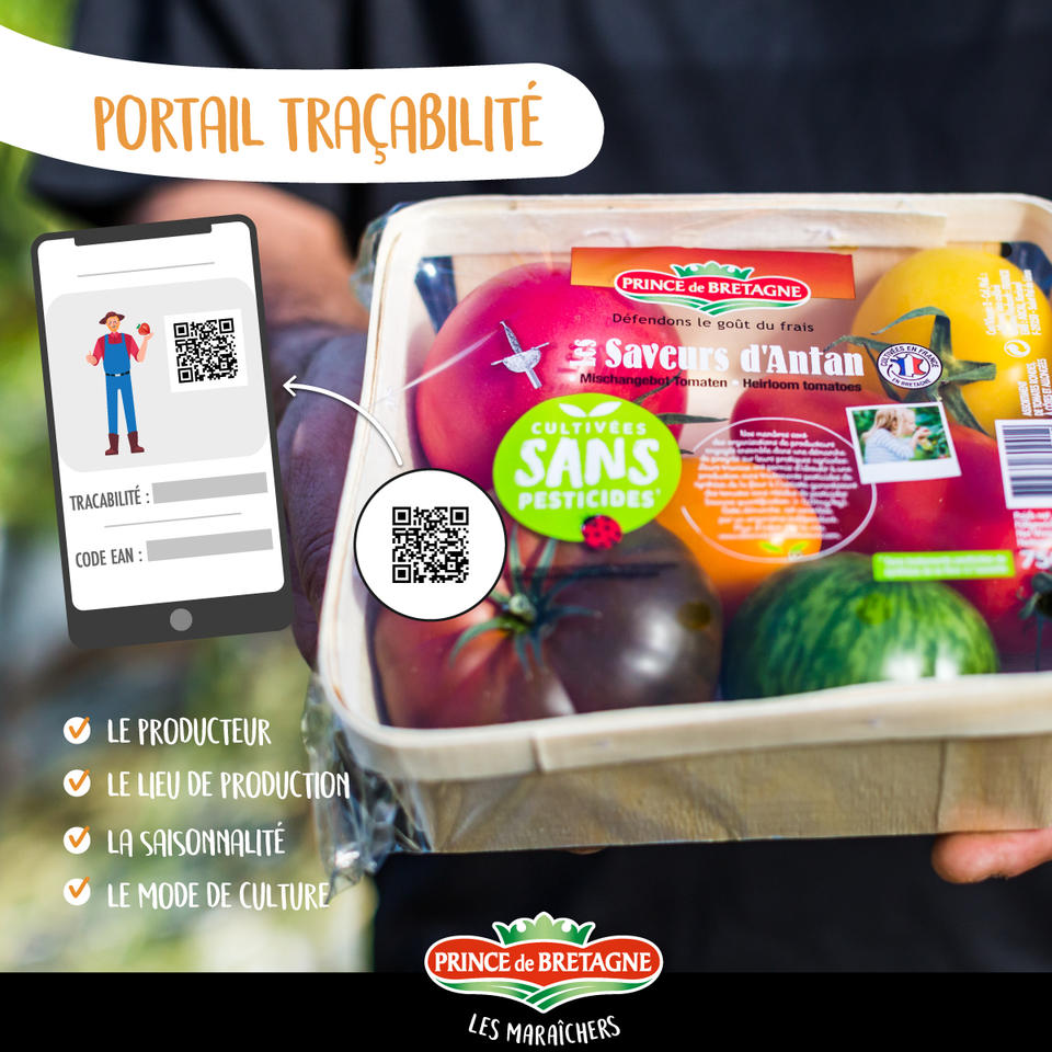 En scannant le QR code imprimé sur l’emballage avec son smartphone le consommateur accède au portail traçabilité de Prince de Bretagne et peut consulter de nombreuses informations sur le produit qu’il a acheté : l’identité du producteur ainsi que l’histoire de l’exploitation ; le parcours du produit, depuis le site de production jusqu’à la station de conditionnement ; les qualités et valeurs nutritionnelles du légume ; des informations sur les différentes certifications du producteur (bio, cultivés sans pesticides...) ; des conseils de préparation accompagnés de recettes ; des vidéos pour permettre au consommateur d’être au cœur de la production.