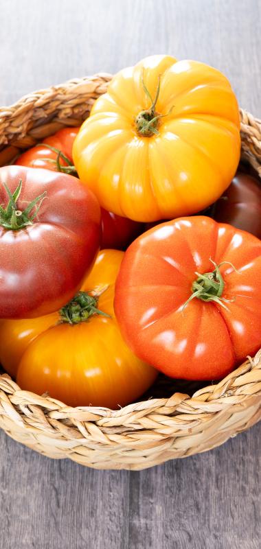 Les tomates anciennes se conservent ainsi trois à quatre jours dans un saladier ou une corbeille à fruits. Conservez-les avec leur pédoncule : il garantit leur fraîcheur et leur permet de continuer à puiser naturellement des sucs, même après la récolte.