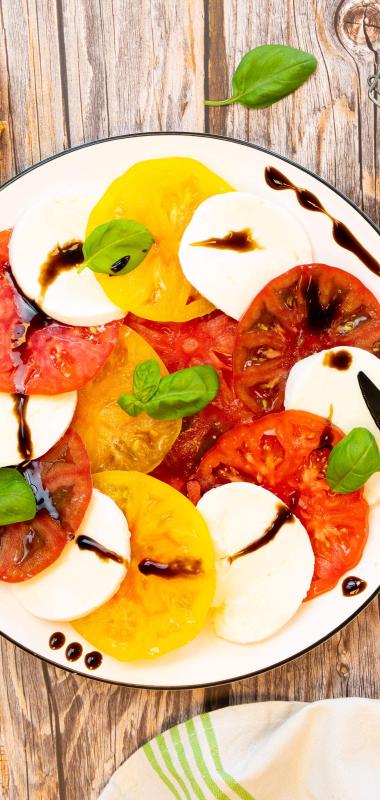 Alternez des tranches fines de Marmande rouge, d’Ananas jaune et de Côtelée noire avec des rondelles de mozzarella. Arrosez d’un filet d’huile d’olive, ajoutez quelques feuilles de basilic et une pointe de fleur de sel. Un plat frais, coloré et ultra simple.