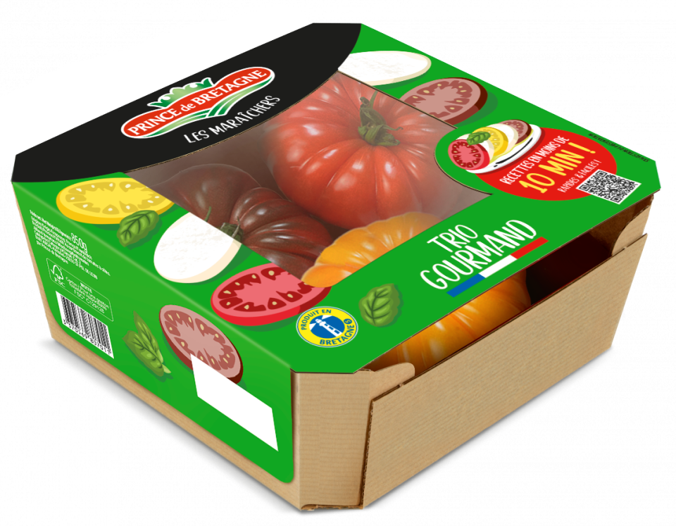 Les tomates Trio Gourmand Prince de Bretagne sont triées et conditionnées manuellement, ce qui garantit un assortiment harmonieux et des fruits cueillis à pleine maturité pour un goût optimal.
